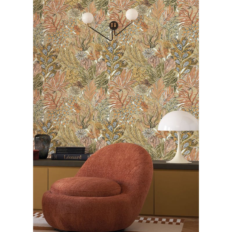 Gartenblumen Tapete bunt von Casamance, Kollektion Jardin Félicia. Abwaschbare Vinyl-Qualität, Maße: 68,6 cm x 10 m.