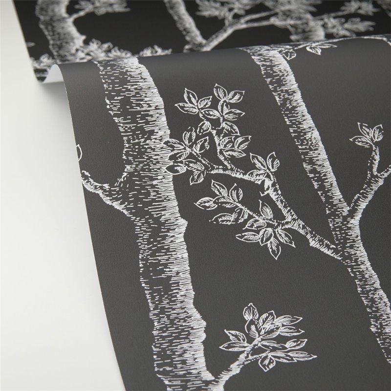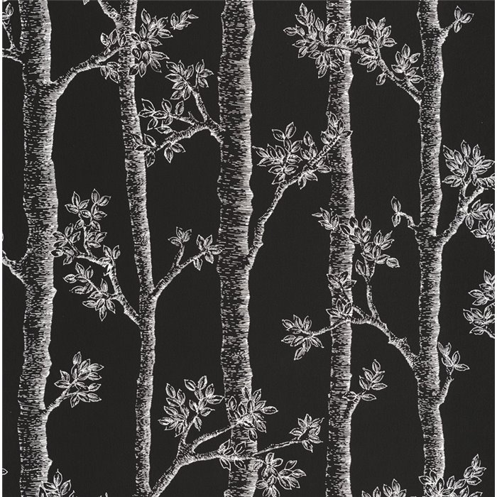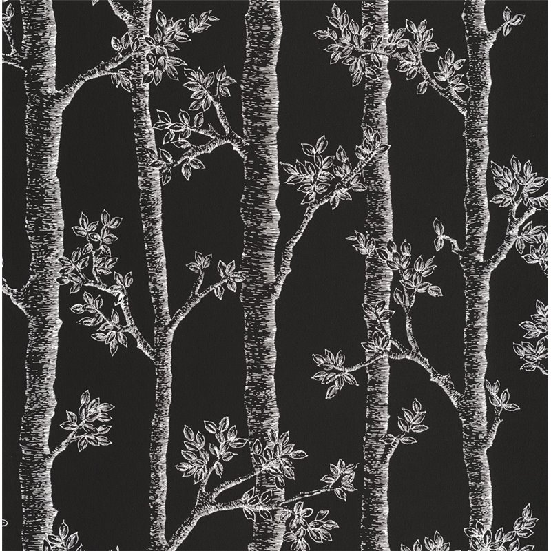 Tapete mit schwarz-weißen Bäumen, skandinavischer Stil. Caselio Balade, waschbare Vliestapete. Maße: 53 cm x 10 Meter