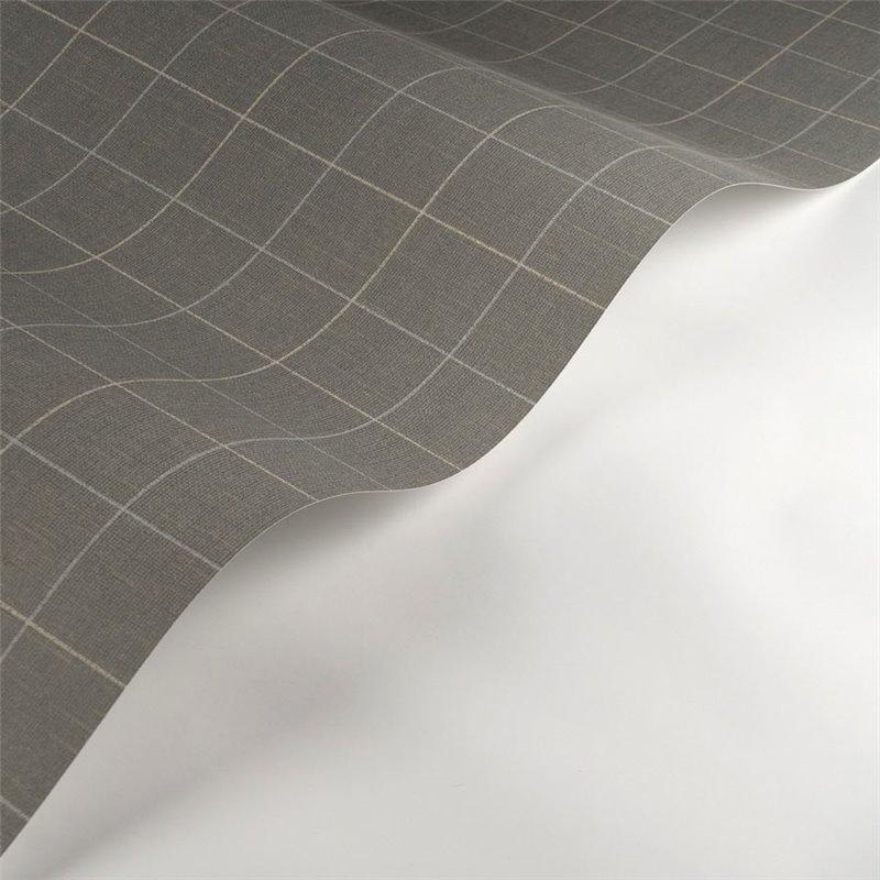 Englische Karotapete in dunklen Tönen, Graphitgrau oder Schwarz. Dunkle Karos für ein elegantes Wohnzimmer.