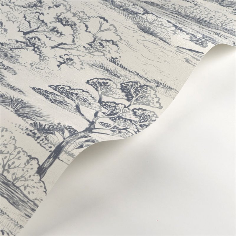 Landschaftstapete mit Kiefern in Schwarz und Weiß im mediterranen Stil. Kontrastierende Kiefern für ein elegantes Wohnzimmer.