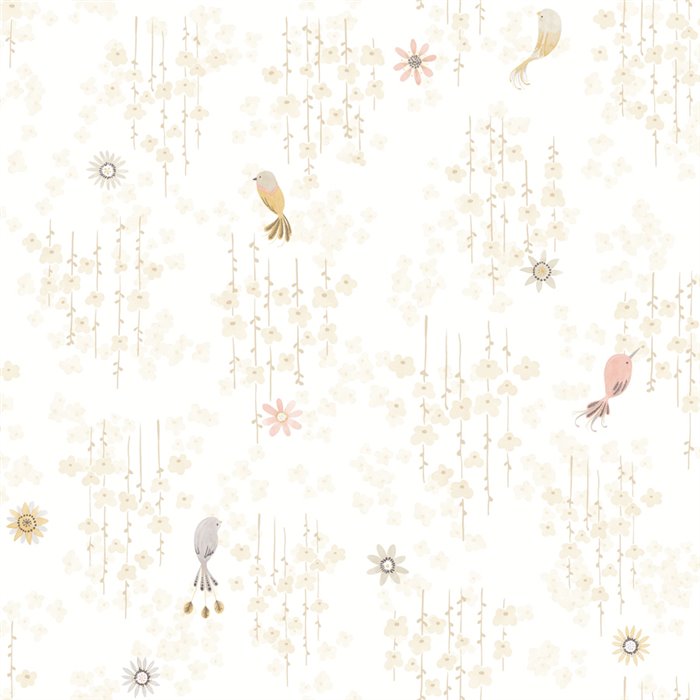Kinder Tapete exotische Vögel und Blumen rosa Pastell von Casadeco, Kollektion Once Upon A Time 2. Vliestapete waschbeständig, Maße: 53 cm x 10 Meters.