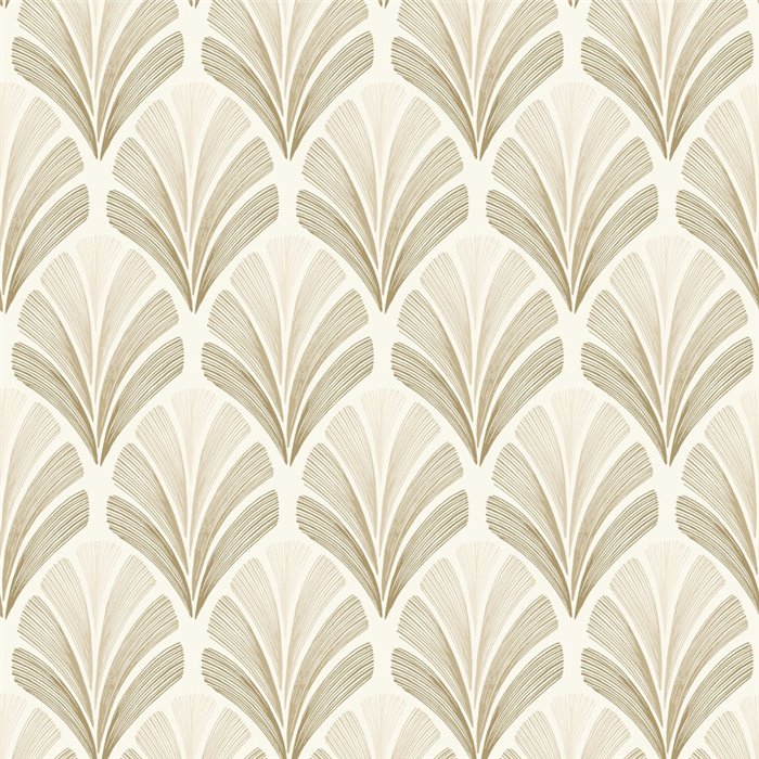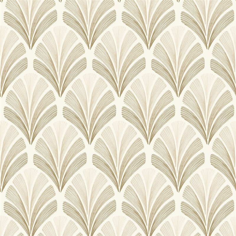 Grüne geometrische Art-Déco-Tapete mit Palmenblatt-Formen. Lebendig für ein schickes Wohnzimmer.