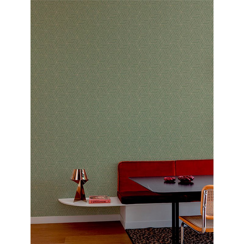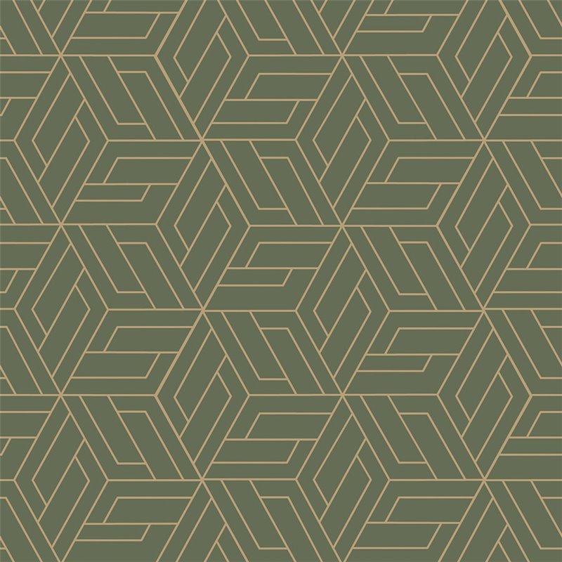 Geometrische Sechsecke 3D Schwarz-Gold Tapete. Setzen Sie Ihre Wände in Szene im Homeoffice. Inspiriert von klassischen Mustern mit modernem Touch.