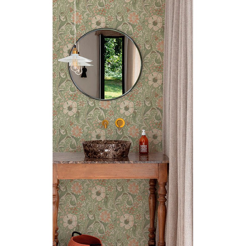 Vintage Blumenmuster Taupe Tapete. Verwandeln Sie Ihr Zuhause im Homeoffice. Passt perfekt zu hellen Möbeln und natürlichen Materialien.
