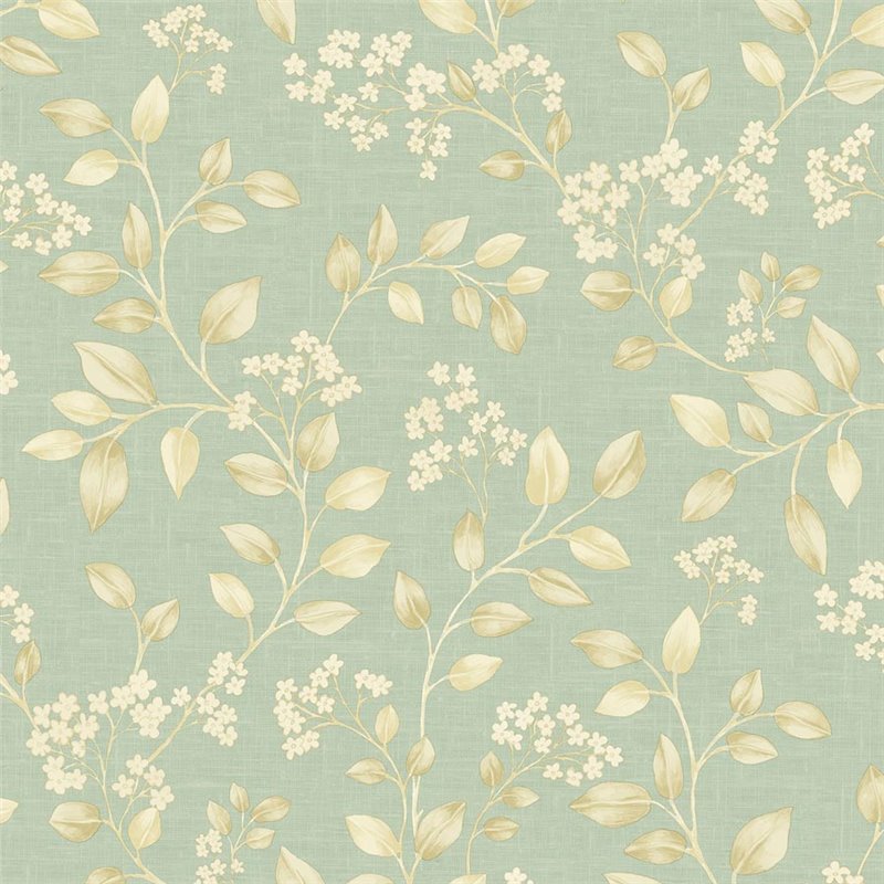 Romantischer Tapeten: kleine weiße und grüne Blumen. Setzen Sie Ihre Wände in Szene für eine gemütliche Leseecke. Ein eleganter Look für jede Wand.