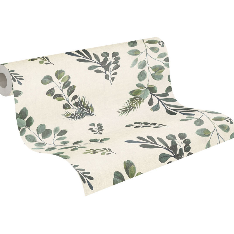 Die Tapete Painted Petals 2028782212 in Grau und ihr botanisches Design mit Zweigen, Blättern und kleinen Details ist ideal für ruhige und anspruchsvolle Umgebungen. Dieses Design passt perfekt zu skandinavischen, modernen und natürlichen Stilen.