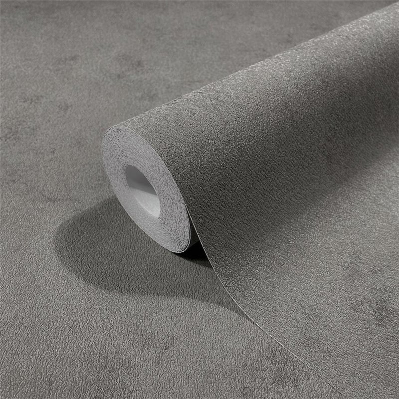 Eine dekorative Option mit großem Charakter ist die Tapete im glatten, zeitlosen dunkelgrauen Putz-Effekt Marburg Papis Loveday 33757.