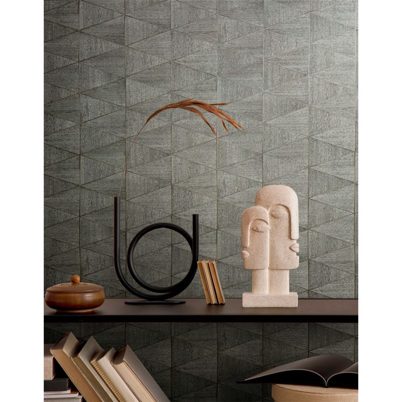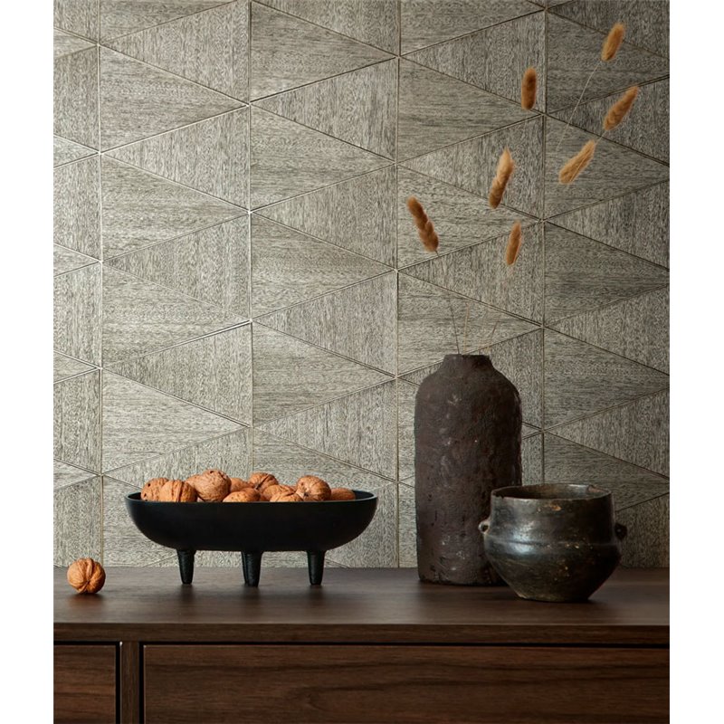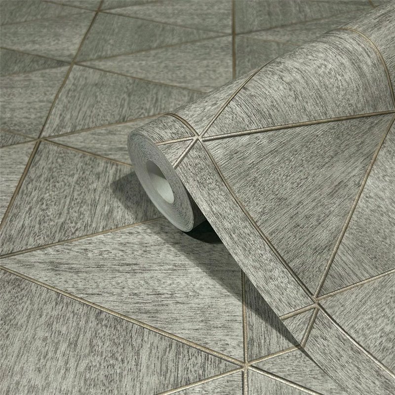 Moderne graue und beige geometrische Tapete in Holzoptik, ideal zum Hervorheben Ihrer Wände. Marburg Travertino 33357.