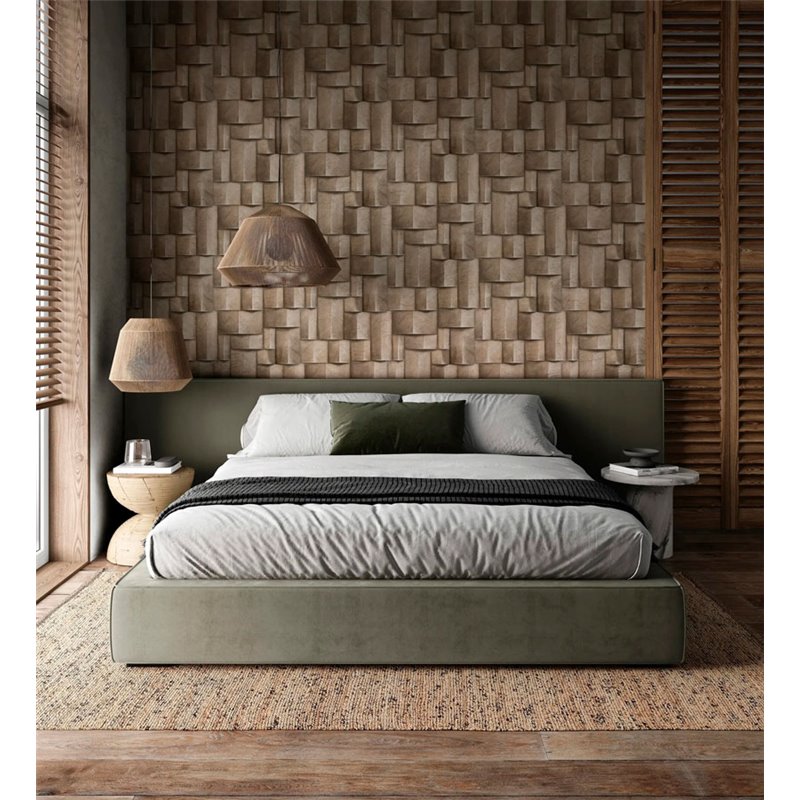 Tapete 3D Holzblöcke in modernem Grün, perfekt für Innenarchitekturprojekte. Marburg Timber 35378.