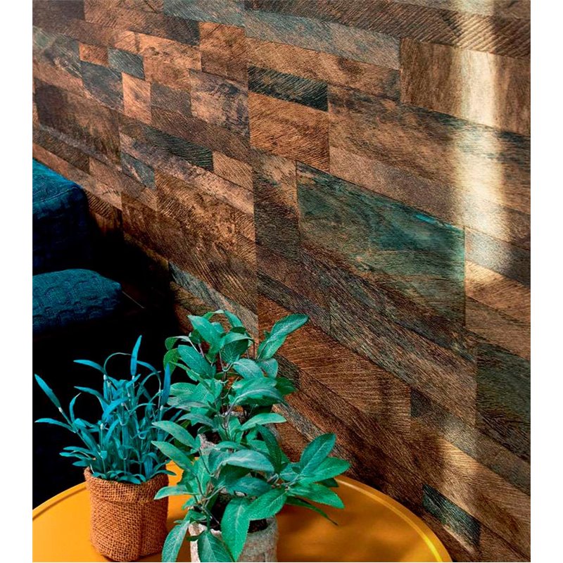 Vinyl-Tapete in Holzoptik braun und grün, verleiht ein harmonisches und naturverbundenes Flair. Rollengröße: 1 x 10 Metres