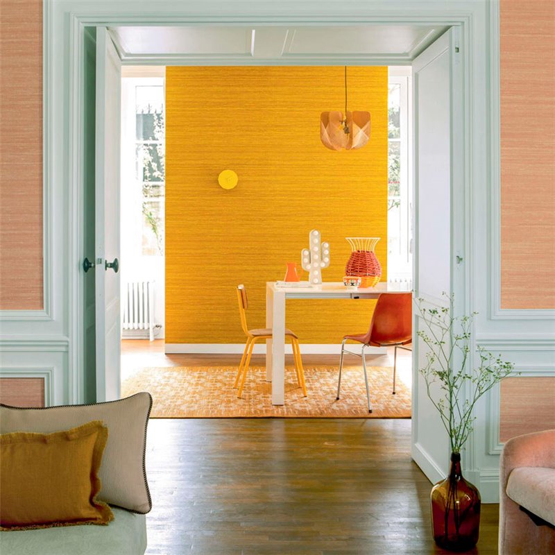 Vinyl-Tapete aus Naturseide in Senfgelb, warm und auffällig. Rollengröße: 1 x 10 Metres