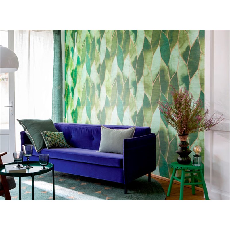 Seidentapete in hellen Tönen mit Buntglas- oder Mosaikmuster, kunstvoll und dekorativ. Rollengröße: 1 x 10 Metres