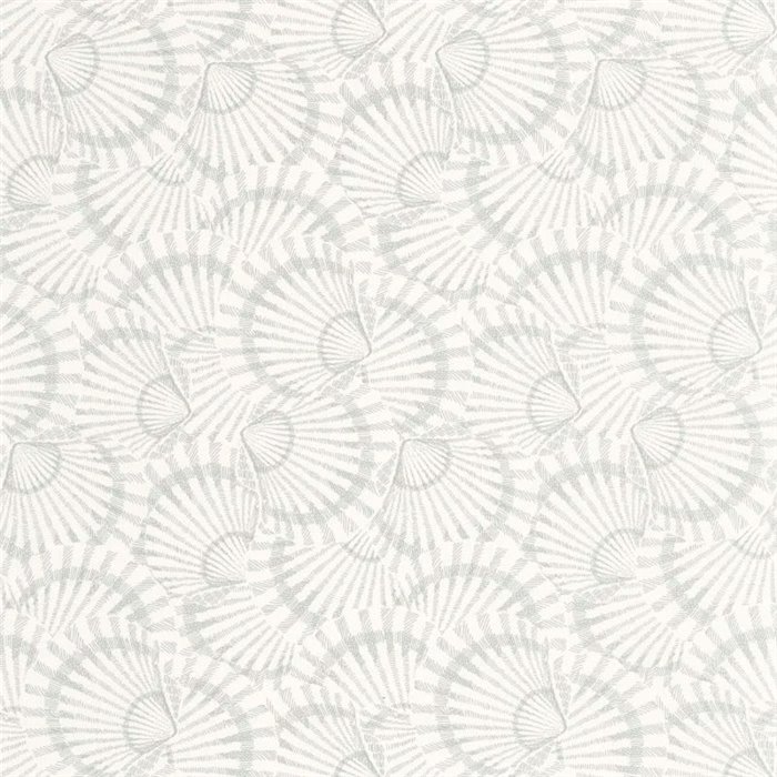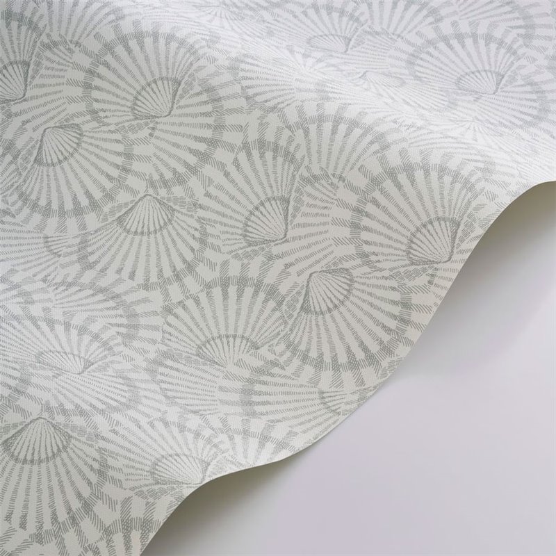 Tapete mit Muscheln in Greige, ideal fürs Bad, perfekt für Räume mit natürlicher Struktur und mediterranem Flair.