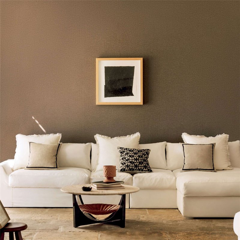 Textiltapete in Braun mit Stickereien, edel und dekorativ. Rollengröße: 1 x 10 Metres