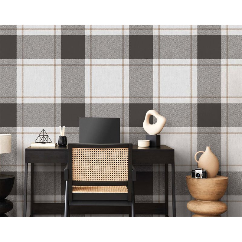 Der tapete cuadros beige suave Top Stripes 38411 von Cristiana Masi präsentiert elegante Schottenkaro in warmen Tönen für eine zeitlose Dekoration.