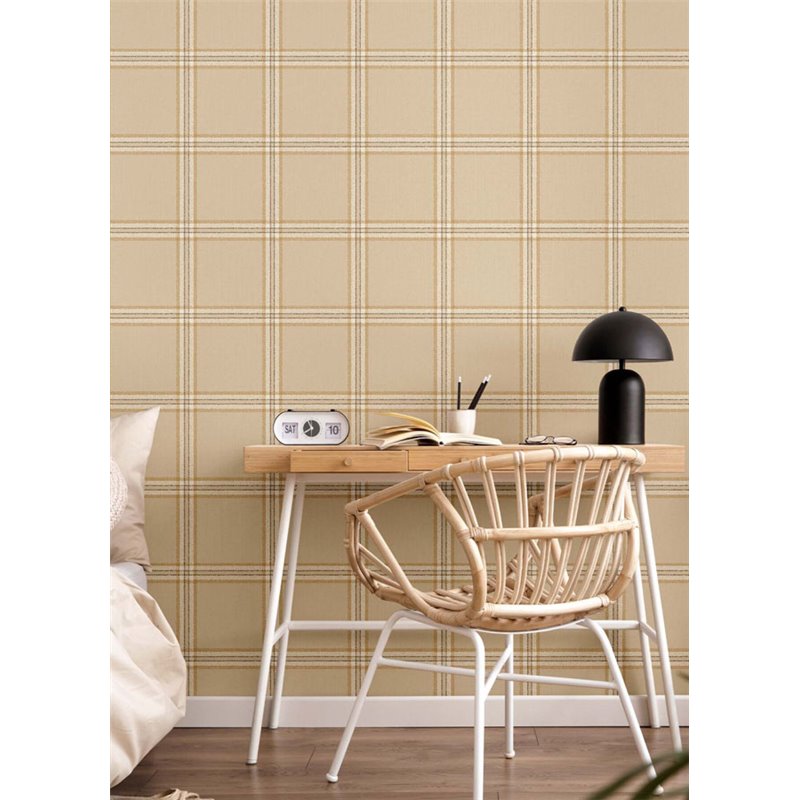 Der tapete cuadros beige dorado Top Stripes 38413 von Cristiana Masi bringt Wärme und Harmonie dank seines traditionellen schottischen Karomusters.