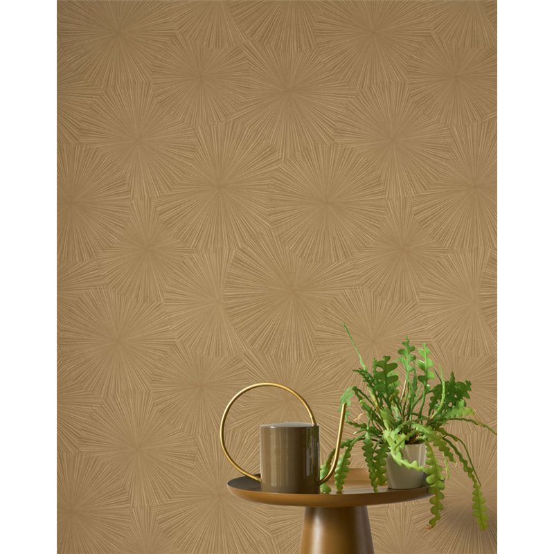 Die Tapete HELIOS Doré aus der Casadeco Solaris Kollektion feiert das Licht mit einem Motiv von stilisierten Sonnen, die an der Wand zu explodieren scheinen. Die goldene Oberfläche intensiviert den Glanz des Designs und schafft eine luxuriöse und lebendige Atmosphäre, ideal für Eingangsbereiche, Wohnzimmer oder Esszimmer, die einen spektakulären Effekt suchen. Jeder grafische Kreis fängt das Licht ein und gibt es in warmen Blitzen zurück, wie ein Feuerwerk, das in der Zeit eingefroren ist.