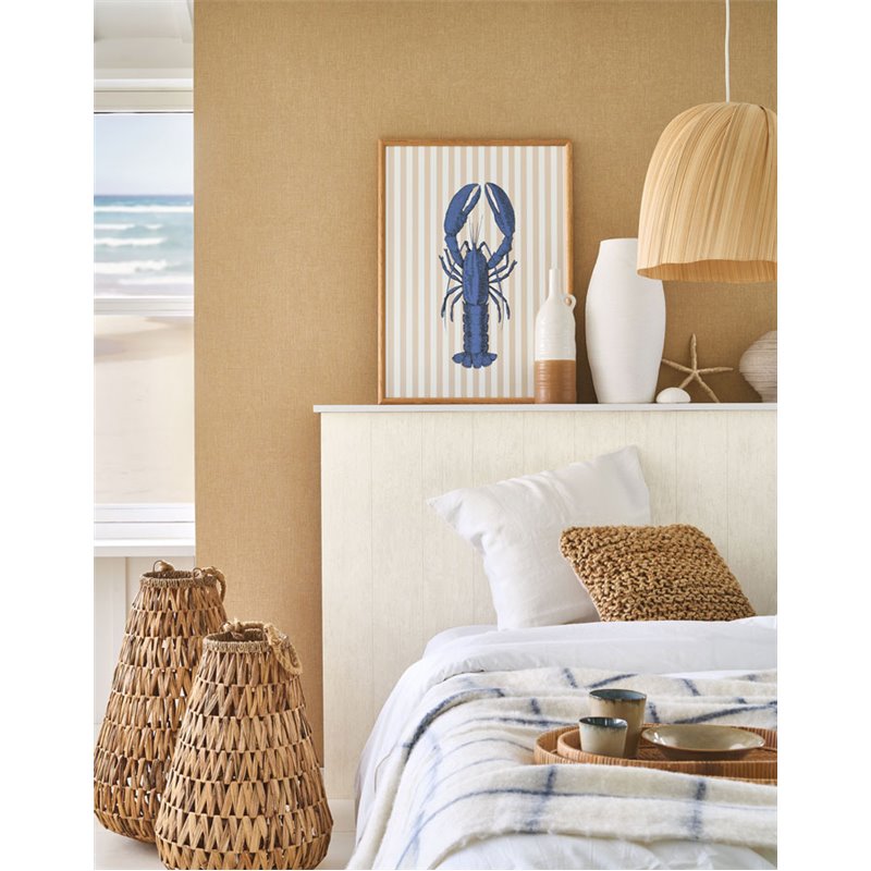Tapete Caractère von Casadeco in Ockerbraun mit einer reichen Leinenoptik, die natürliche Ausdruckskraft und zeitlose Eleganz vermittelt.