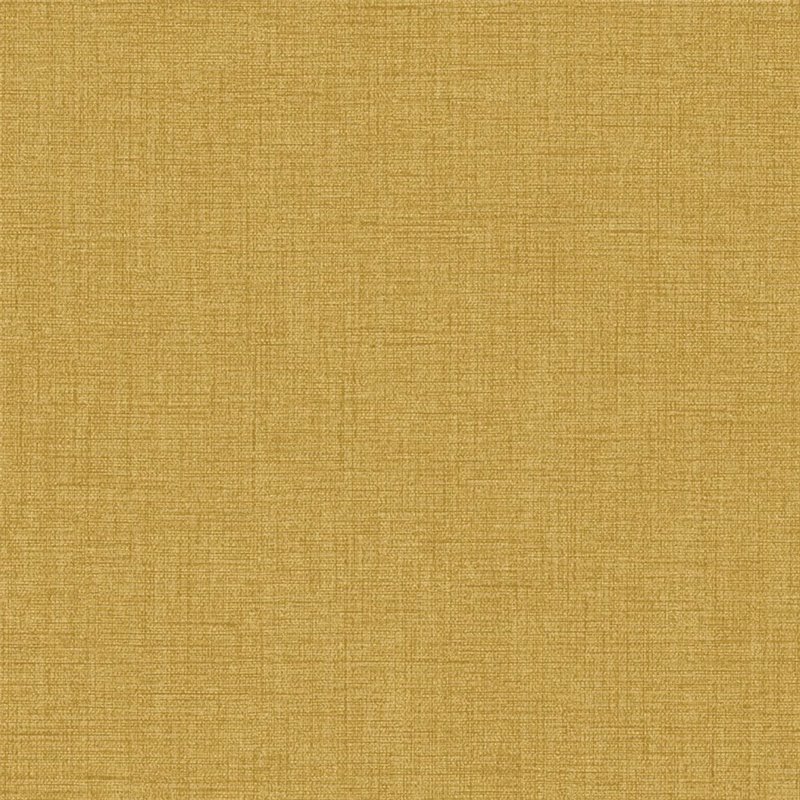 Tapete Caractère von Casadeco in Currygelb mit einer lebendigen Leinenoptik, die warme Energie und ausgewogene Farbwirkung erzeugt.