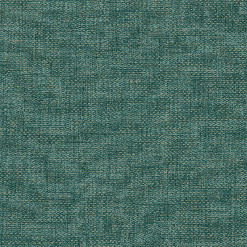 Tapete Caractère von Casadeco in Pfauenblau mit einer markanten Leinenoptik, die dekorative Stärke, Charakter und Harmonie ins Interieur bringt.