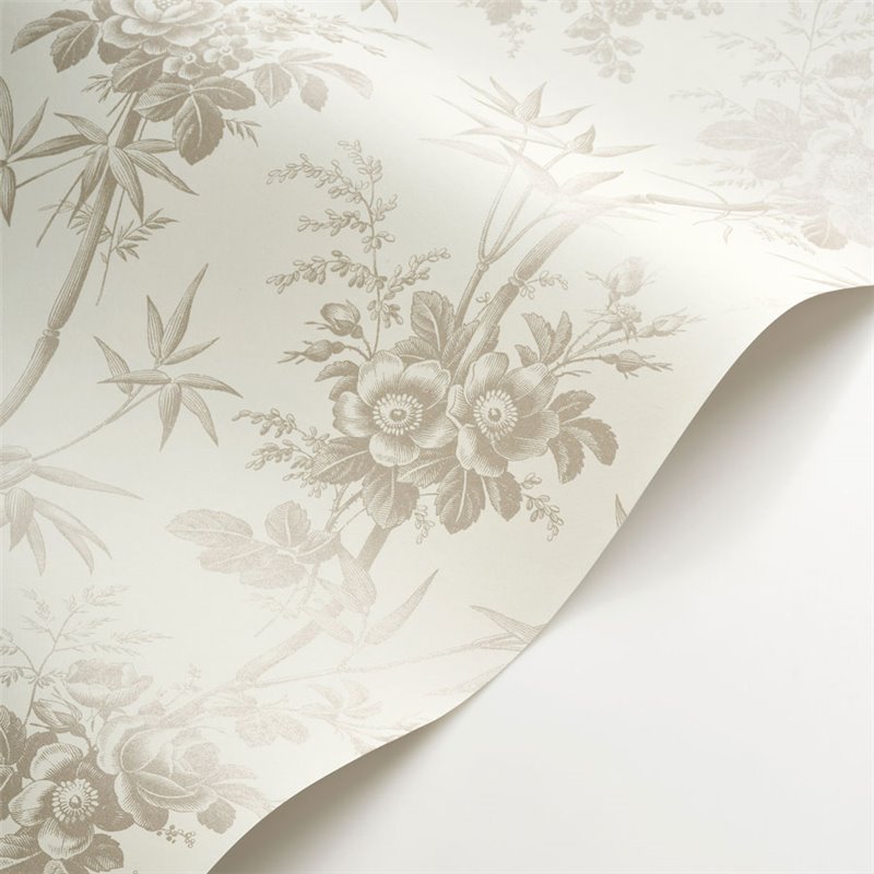Tapete klassisch floral bambus und rosen weiß grau