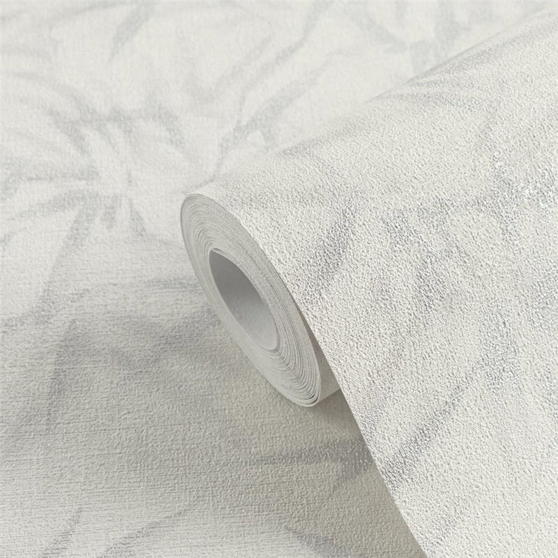 Orientalisches Motiv mit Bambusblättern in Cremeweiß, eine Tapete für das Wohnzimmer, die Helligkeit und einen dezenten exotischen Akzent verleiht.