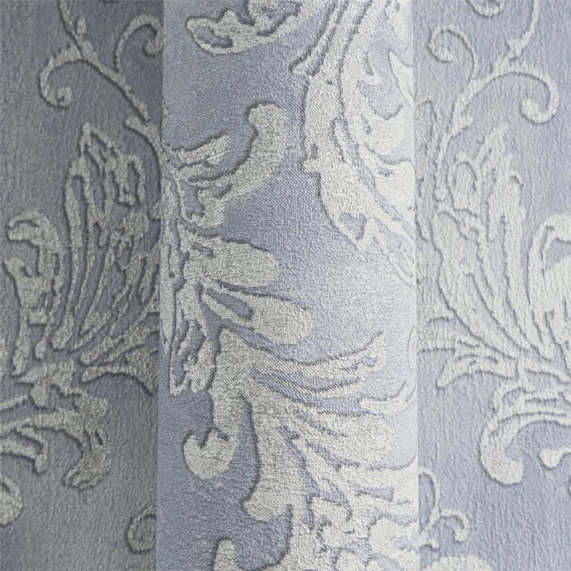 Damas-metallic-Motiv in Blau, eine Tapete ideal für das Wohnzimmer, die Raffinesse und dekorative Lichtreflexe verleiht.