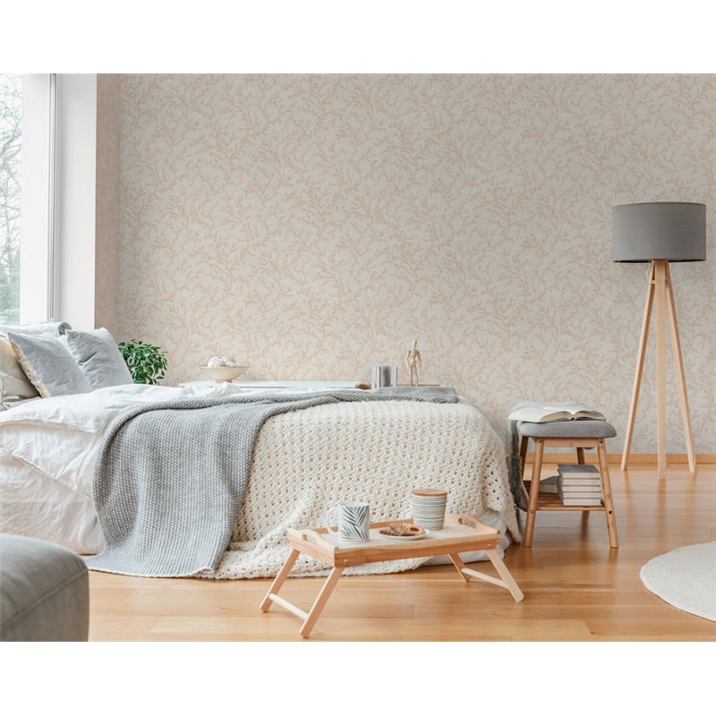Skandinavisches Motiv mit Zweigen in Beige, eine Tapete ideal für das Schlafzimmer, die eine ruhige und natürliche Atmosphäre schafft. Vliestapete, Rolle 53 cm x 10 m.