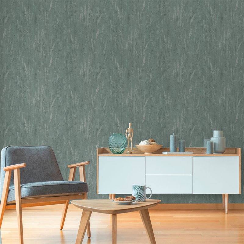 Skandinavisches Wildblumen-Design in Grün, eine Tapete ideal für das Wohnzimmer, die Natürlichkeit und Frische ausstrahlt. Vliestapete, Rolle 53 cm x 10 m.