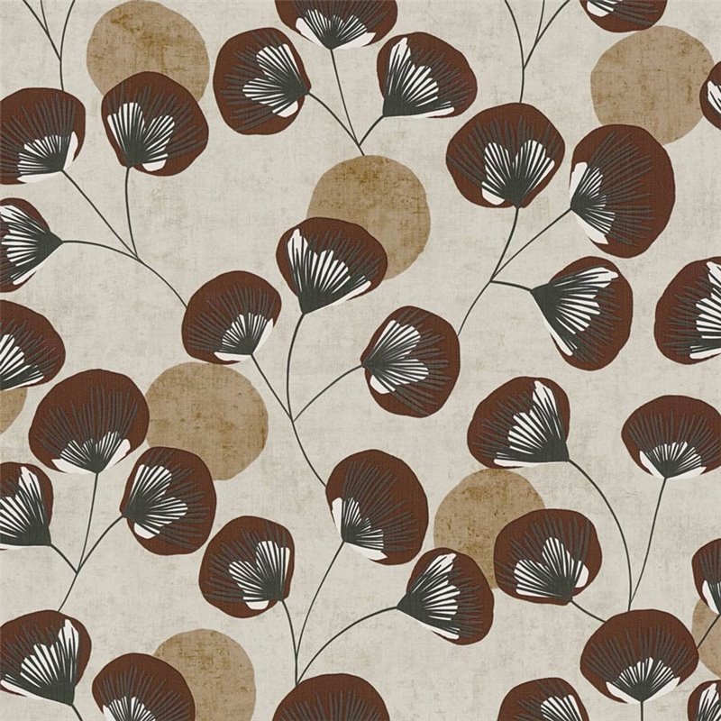 Rot-braune Nuancen innerhalb eines orientalischen japanischen floralen Musters machen diese Tapete zu einer eleganten Wahl mit asiatischer Inspiration.