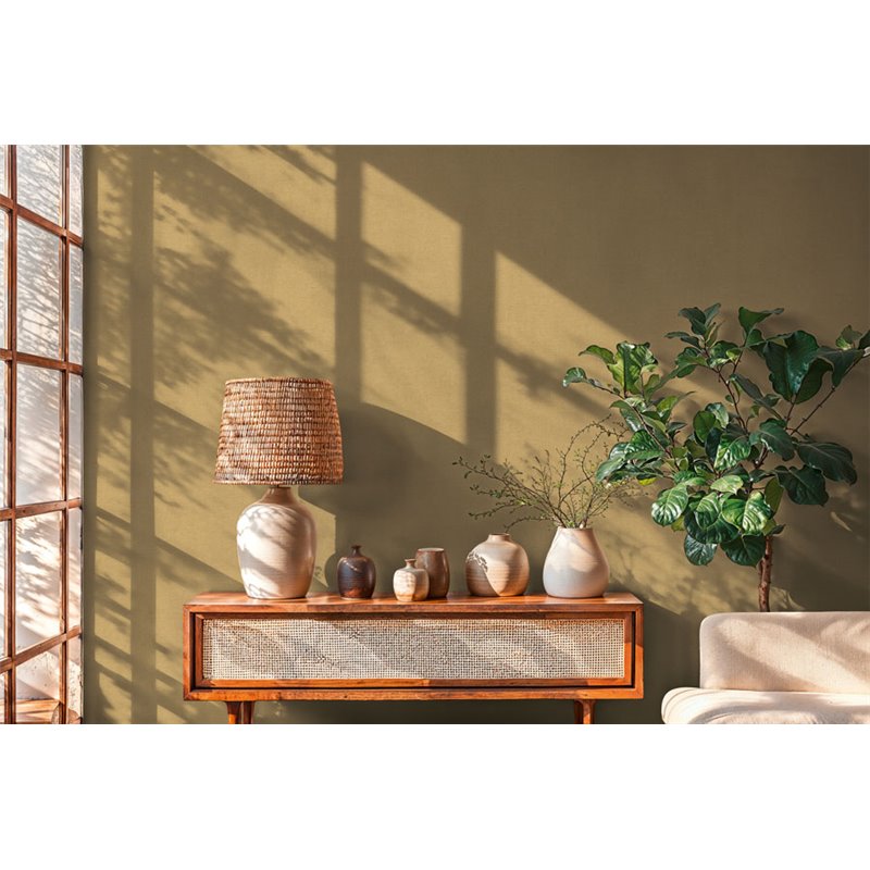 Senfgelb im zeitlosen Uni-Stil setzt mit dieser Tapete charakterstarke und moderne Akzente.