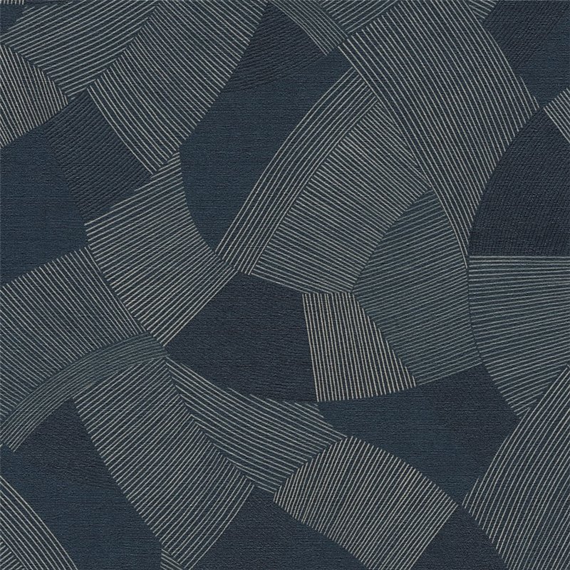 Ein abstraktes Design in Blau und Silber verleiht dieser Tapete eine anspruchsvolle und zeitgenössische Ausstrahlung für Hotelinterieurs.