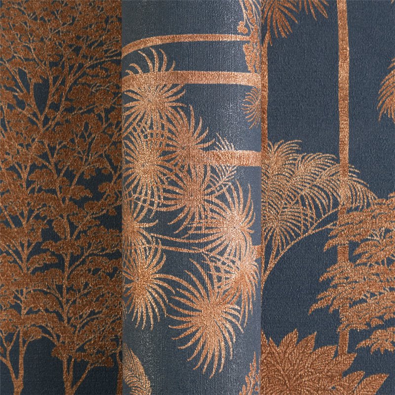 Koloniale Palmenwald-Tapete blau kupferfarben