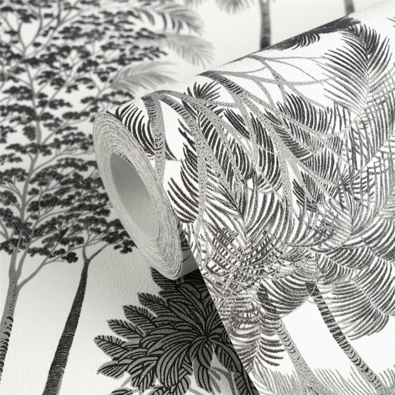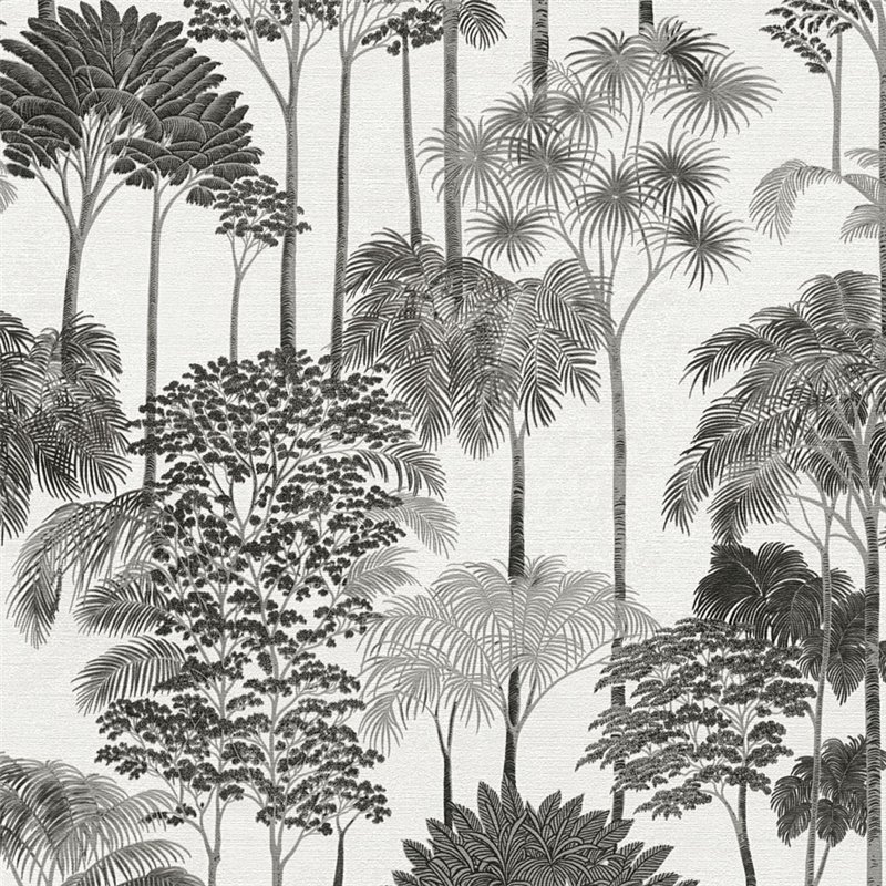 Koloniale Palmenhain-Tapete schwarz und weiß