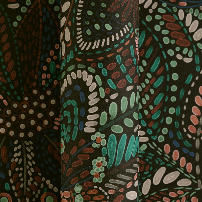 Papiertapete Boho-Chic floral in dunklen Farbtönen