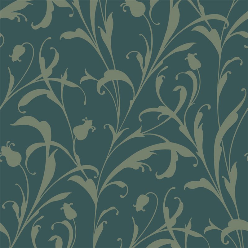 Florale Arabeske grün Tapete mit Glanzfinish, perfekt für Treppenhaus.