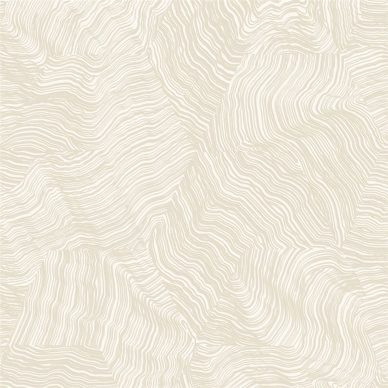 Eine abstrakt gewellt beige Tapete im modern minimalistischen Stil mit metallischem Glanz, ideal für Flur, Boutique, Kosmetikstudio und Spa.