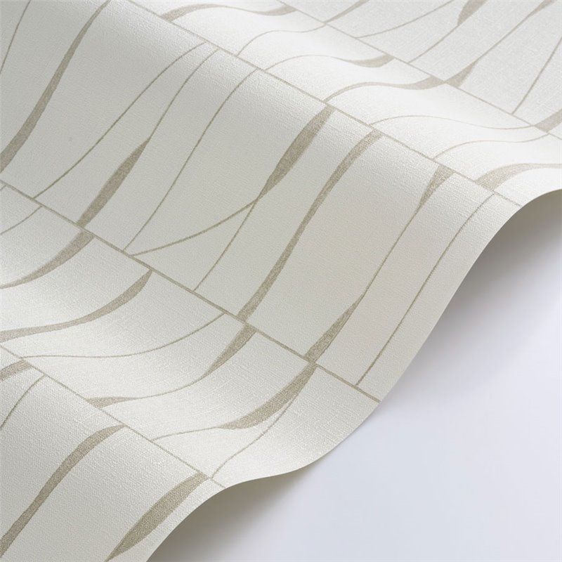 Abstrakte geometrische Tapete Weiß, inspiriert von Webtechniken, kombiniert Scheiben und Ellipsen in einem feinen, lichtdurchfluteten Design mit subtiler Bewegung.