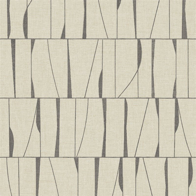 Moderne geometrische Tapete in neutralen Tönen, inspiriert von Posamenten, kombiniert feine Figuren und visuellen Rhythmus zu einem anspruchsvollen Design.