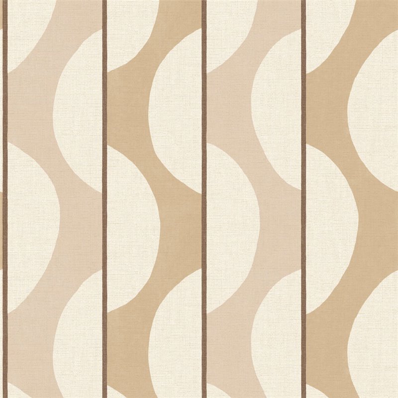 Geschwungene Streifen Tapete Nude Rosa skandinavisch wechselt zwischen Linien und Kurven und bringt weiche Bewegung in den Raum.