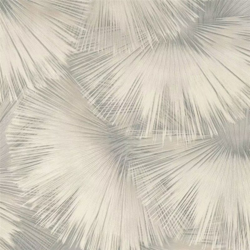 Fächerförmige Blätter in Grau mit dezentem, dekorativem Charakter. Ein Wandbelag, der sich gut im Wohnzimmer einsetzen lässt