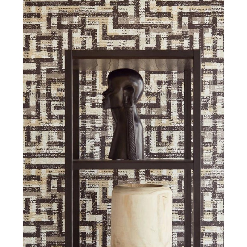 African wallpaper with metallic geometric motifs 376013 by Eijjfinger, Siroc collection. Roll size: 52 cm x 10 m. Non-woven and washable wallpaper.
