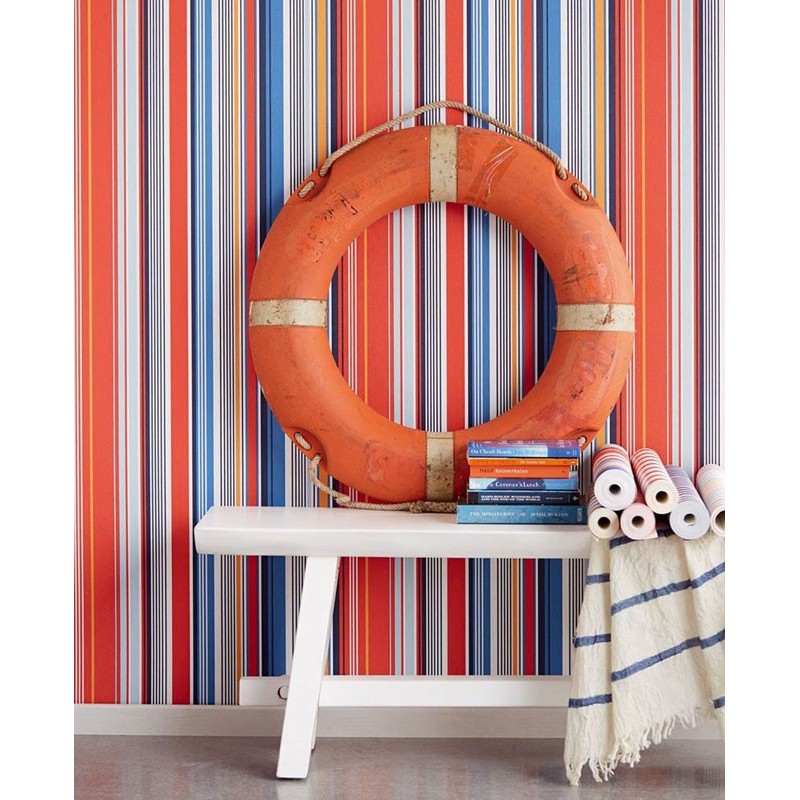 Multicolor straight and diagonal striped wallpaper. Elevate your walls. Versatile enough for any interior style.