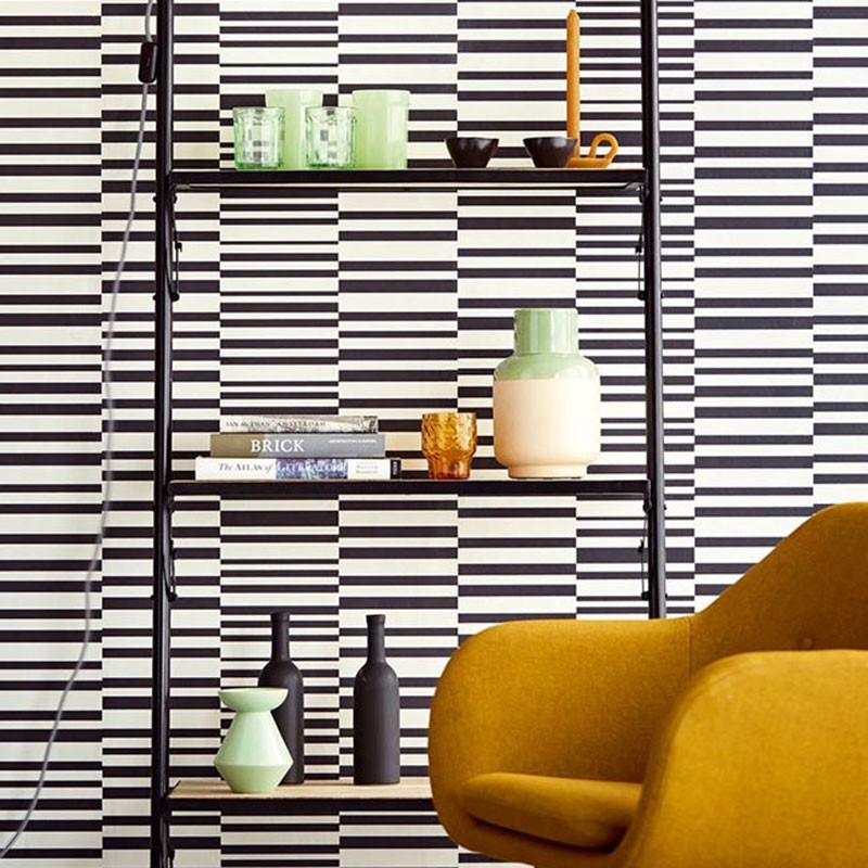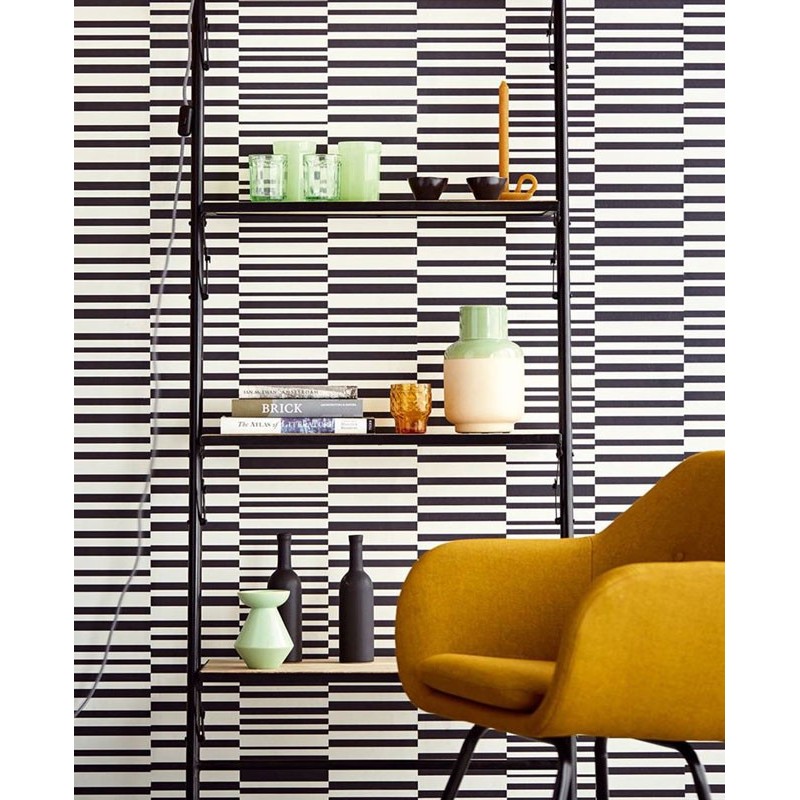 Modern wallpaper with metallic white horizontal broken stripes 377160 by Eijjfinger, Stripes+ collection. Roll size: 52 cm x 10 m. Non-woven and washable wallpaper.