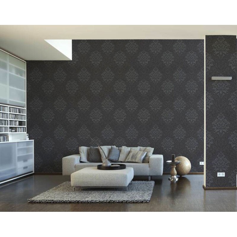 Damask medallions wallpaper glossy grey. As Creation - Metropolitan Stories 368981