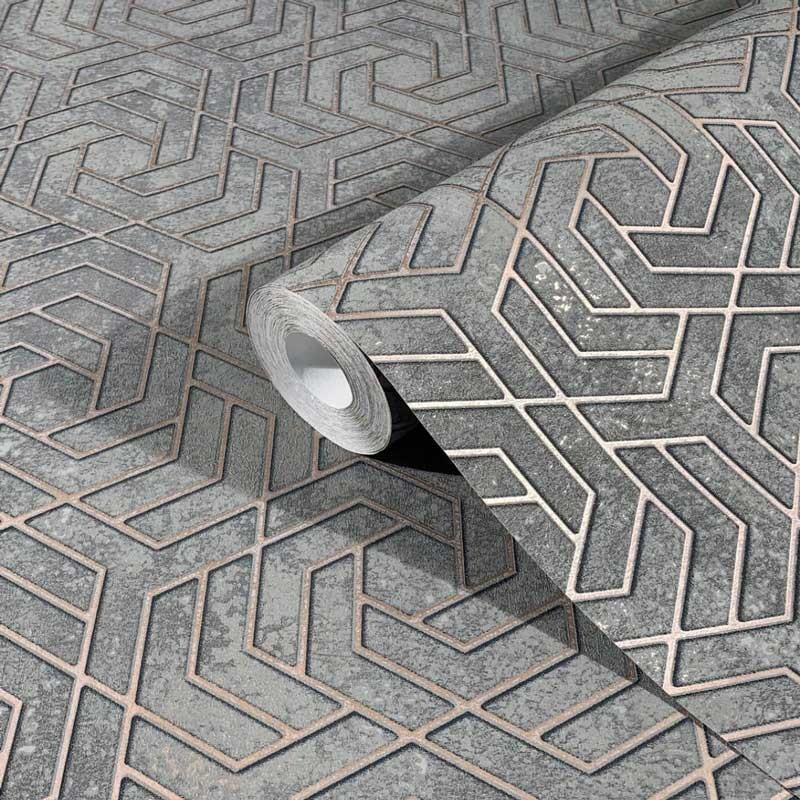 Geometric grey industrial style Wallpaper, with texture and distinctive design. Marburg City Glam 32606.