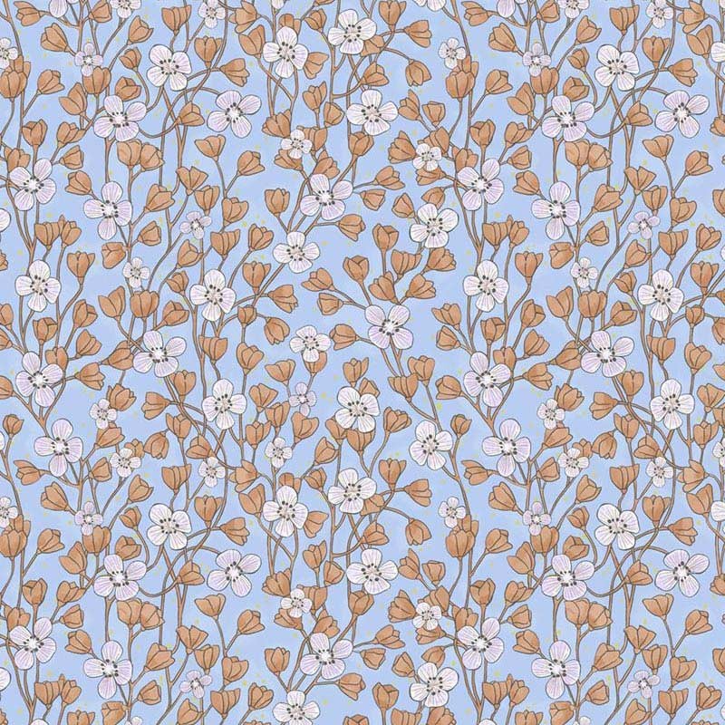 Botanical wallpaper with light blue fern leaves 383543 by Eijjfinger, Rice 2 collection. Roll size: 52 cm x 10 m. Non-woven and washable wallpaper.