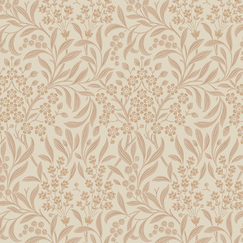 Wallpaper beige arts and crafts style winding floral by Borastapeter, Alla Tiders Hus collection. Washable and Non-woven quality, size: 53 cm x 10 m.