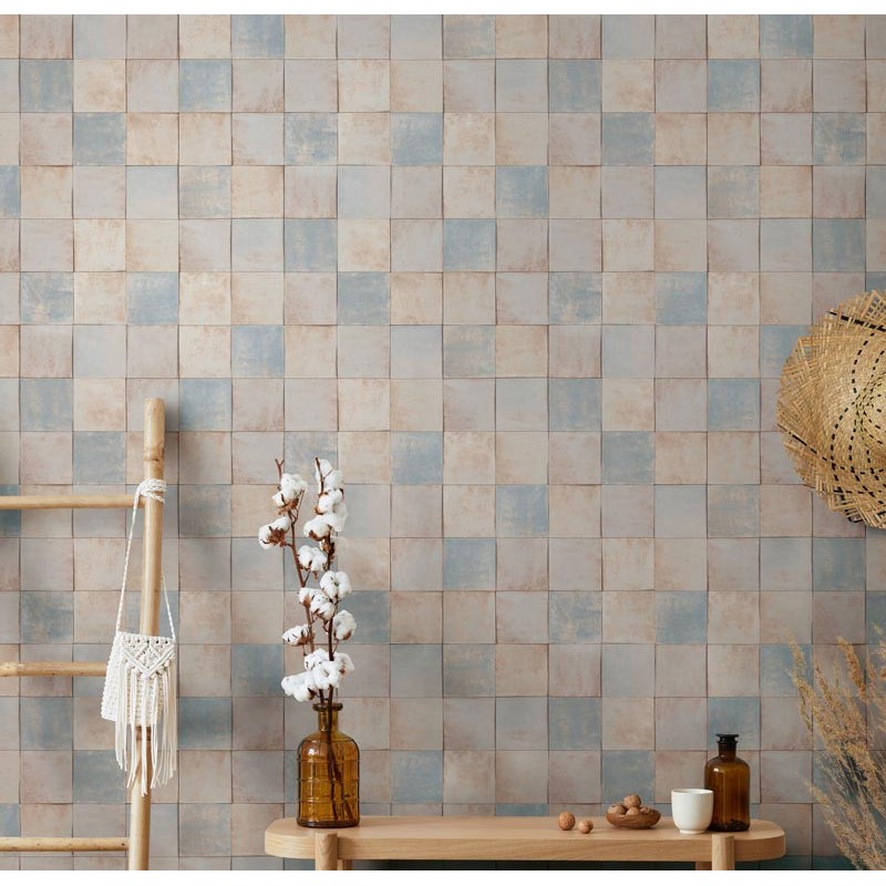 Decoration that envelops and provides identity, wallpaper imitation gray and sky blue tile Marburg Zellige 45712.