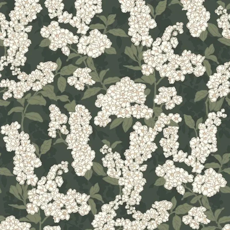 Japanese style wallpaper with white cherry blossoms and peonies, a chromatic base that brings visual clarity and timeless style.